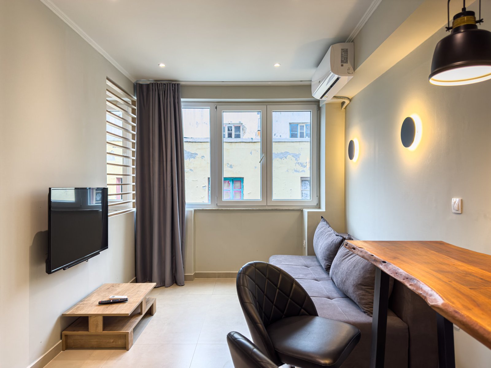 Relax in comfortable living room, complete with a sofa, smart TV, and dining area – perfect for winding down or working remotely.