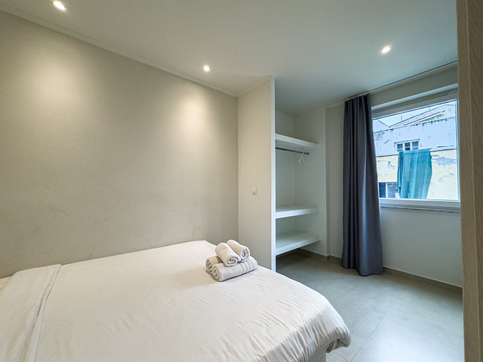 Bedroom features a queen-size bed with premium linens and a wardrobe, providing everything you need for a restful stay.