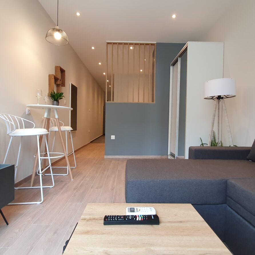 Located on the 3rd floor at Kosti Palama 9, Thessaloniki, the Urban Studio is a 41 m² open-plan apartment designed with clean lines and a calming aesthetic. It’s the ideal city base for couples, business guests, or small families who appreciate a modern, unfussy vibe.